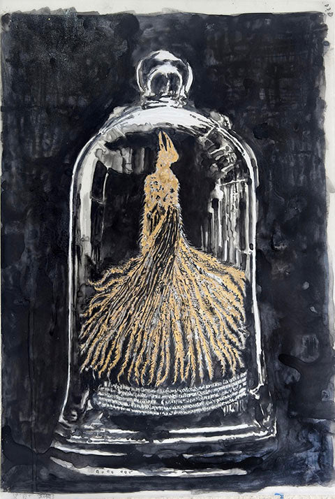 watercolour, pigment, graphite, gold metal leaf, on drafting film and paper