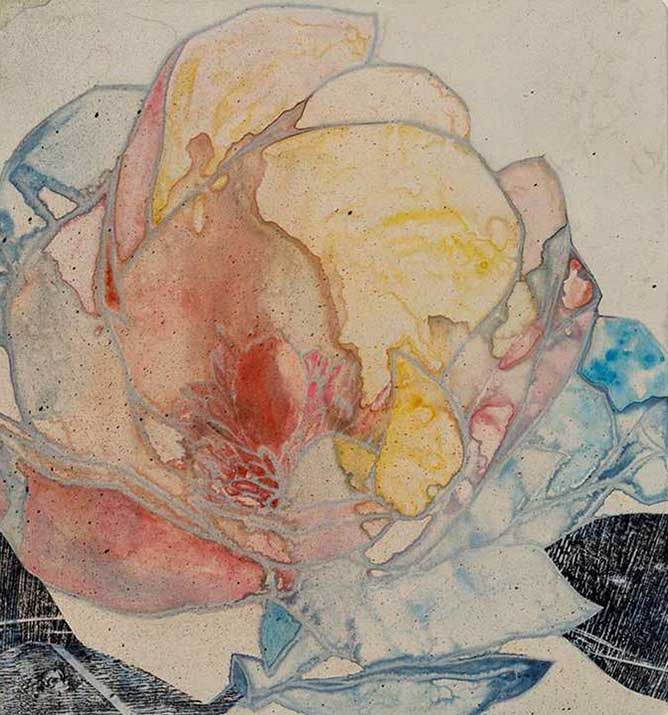 drypoint, watercolour monotype with collage