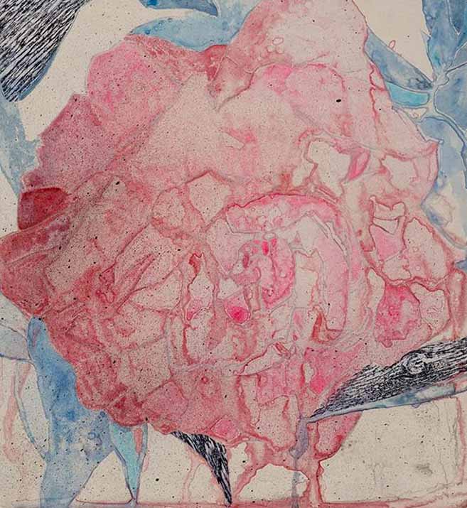 drypoint, watercolour monotype with collage