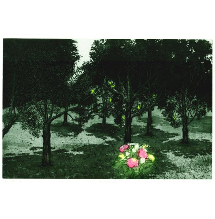 hand coloured etching