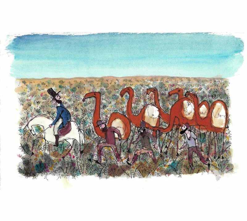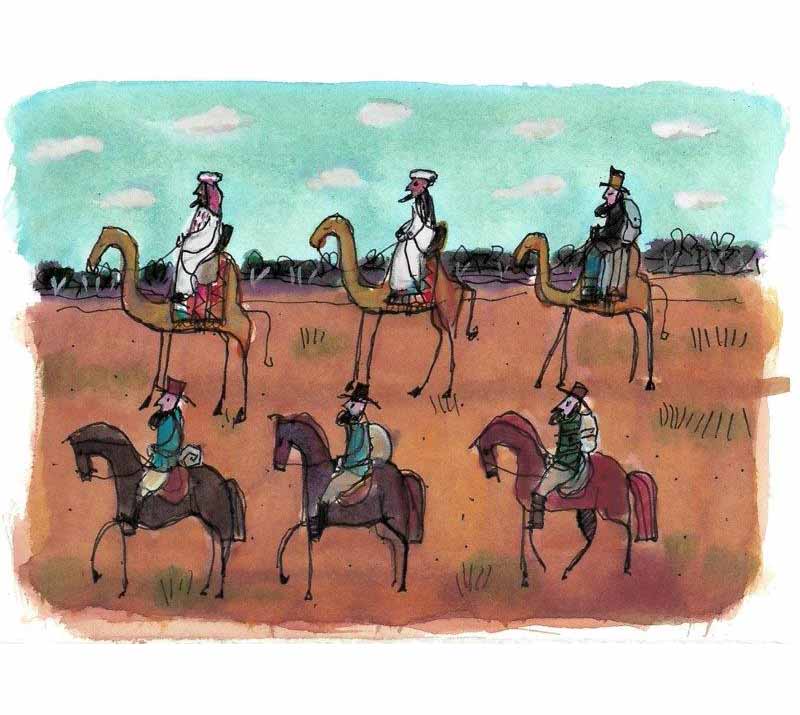 On August 20, 1860, the largest expedition ever mounted departed Melbourne, setting out to become the first to cross the continent to the Gulf of Carpentaria. Led by a police officer from Castlemaine, mounted on his grey horse Billy, a crowd of thousands cheered as 24 camels and 19 mounted men — all donning red shirts — paraded through the city. Six wagons carried two years’ worth of supplies: salted meat, flour, and tea; enough guns for a war; firewood and barrels of rum for the camels’ welfare; together with an oak table, chandeliers, a Chinese gong, and, most importantly, an iron bath to relax in after a hard day’s ride. Twelve months later, only one man would survive to tell the legendary story of Burke and Wills expedition.