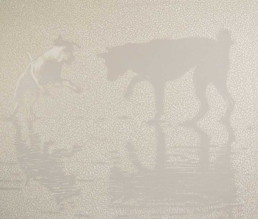 Printmaker Deborah Williams completed a Bachelor of Arts (Honours) in 1994. Her works are existential observations of dogs, emphasising the presence of the animals beyond their relationships with humans. Williams has held solo exhibitions in Melbourne, Sydney, Hobart, Brisbane and Canberra. Her work has been included in group exhibitions internationally in New York, Bali, Thailand, Scotland and Korea. She was awarded the Swan Hill Print and Drawing Acquisitive Award in 2010 and a Member Print Commission from the Print Council of Australia in 1994. Her work is held by the Art Gallery of New South Wales, Sydney; the National Gallery of Australia, Canberra and internationally in collections in Scotland and the United States.
