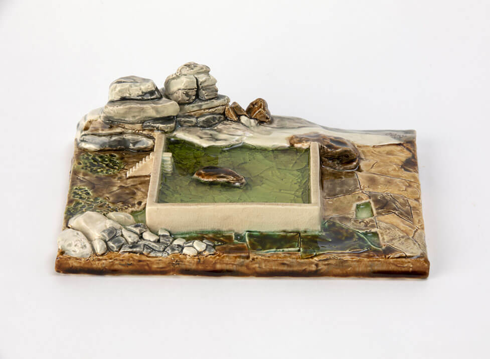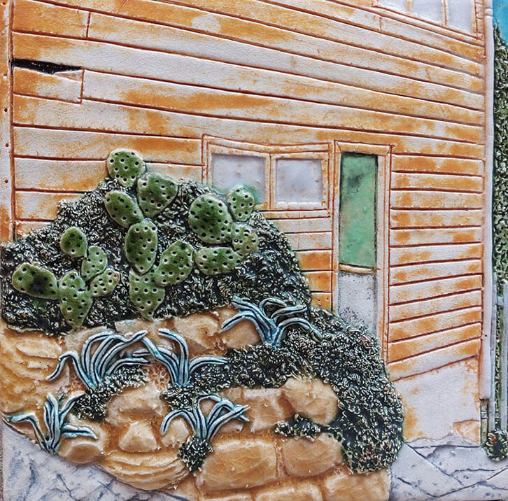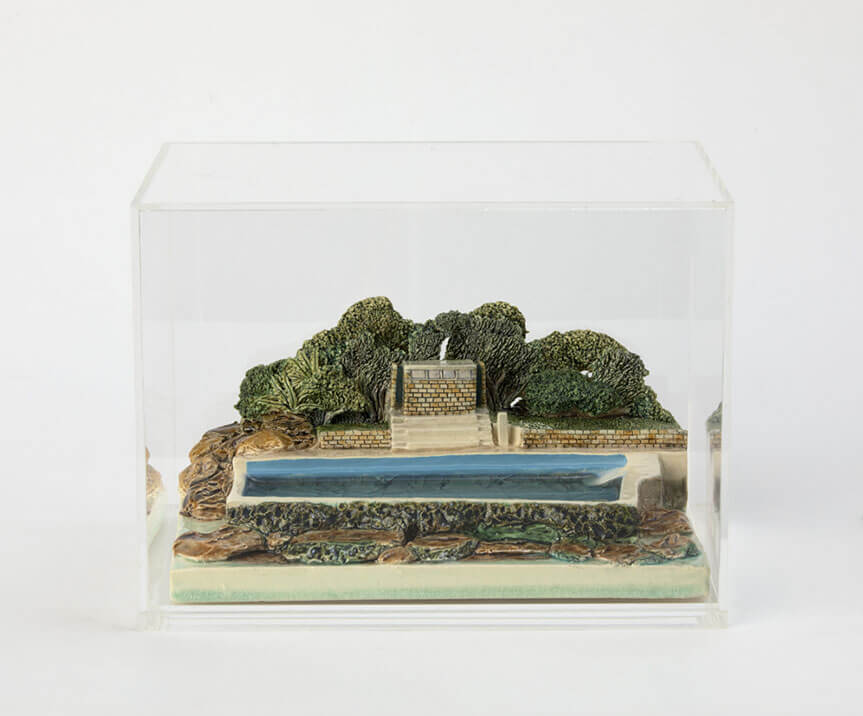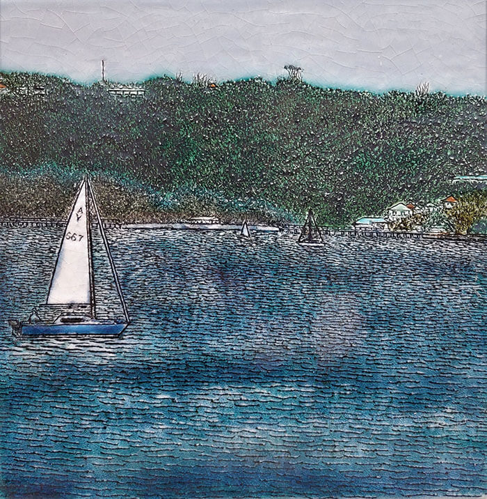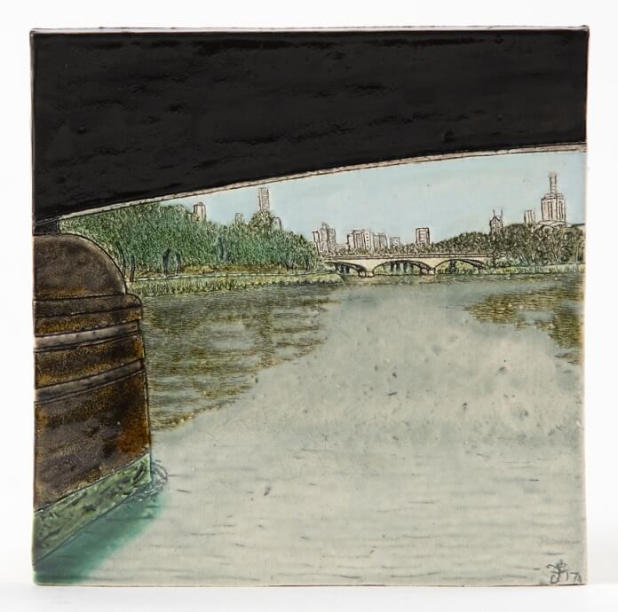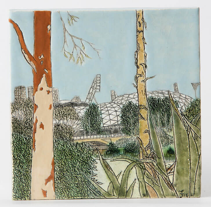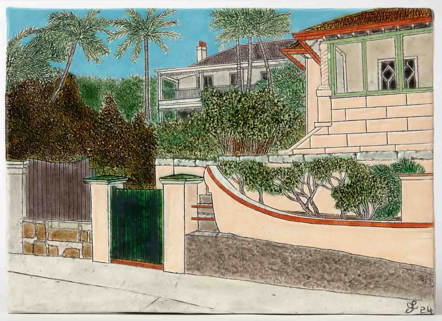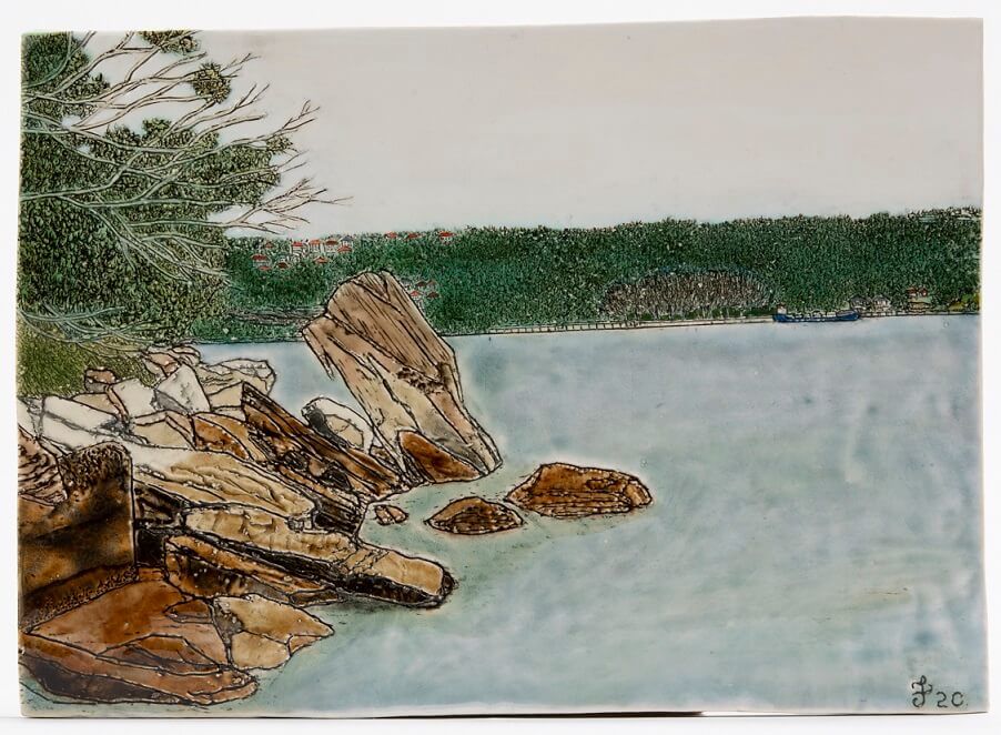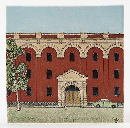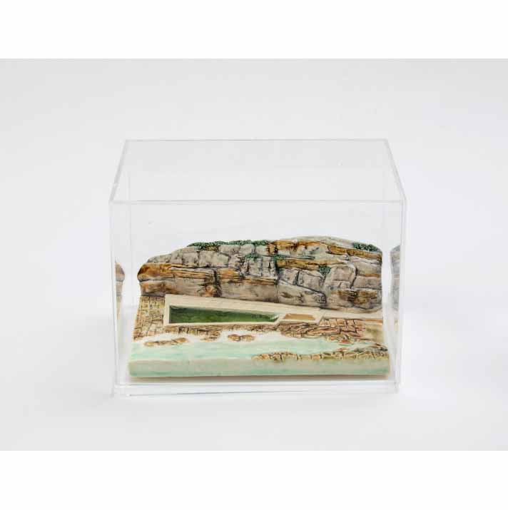 Celebrated artist Fairlie Kingston was born in Sydney and is well renowned for her ceramic relief tiles and sculptures of lighthouses and coastal scenes from around the Eastern suburbs and Sydney Harbour. Kingston uses clay to create models of pre-war iconic public buildings in three dimensions, as well as landscapes and urban scenes on clay tiles in two dimensions with an emphasis on strong line and flat, even colour.
