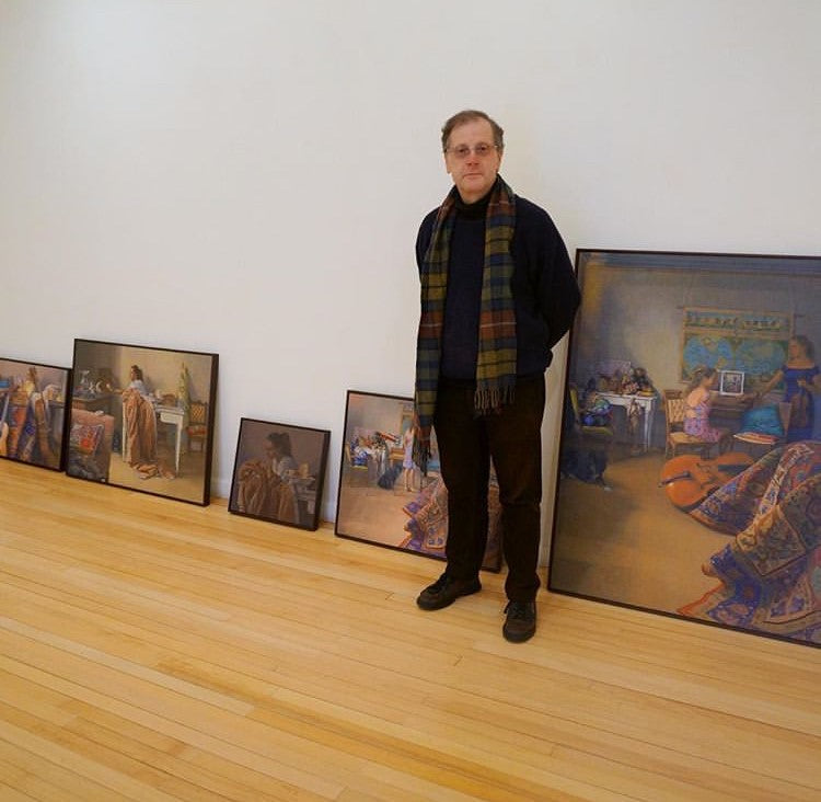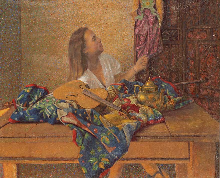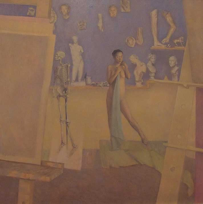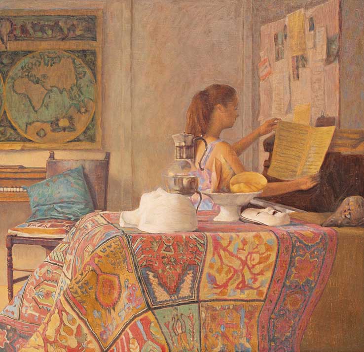 Classically influenced portrait and interior painter Francis Giacco studied architecture at the University of New South Wales in 1976 and later attended the Julian Ashton School from 1976 to 1980. He completed additional training in Vienna between 1980 and 1983. Giacco won the 1994 Archibald Prize at the Art Gallery of New South Wales with his work ‘Homage to John Reichhard’ and the 1996 Mosman Art Prize. In 2014 he won the Glencore Percival Portrait Painting Prize with a portrait of Charles Blackman.