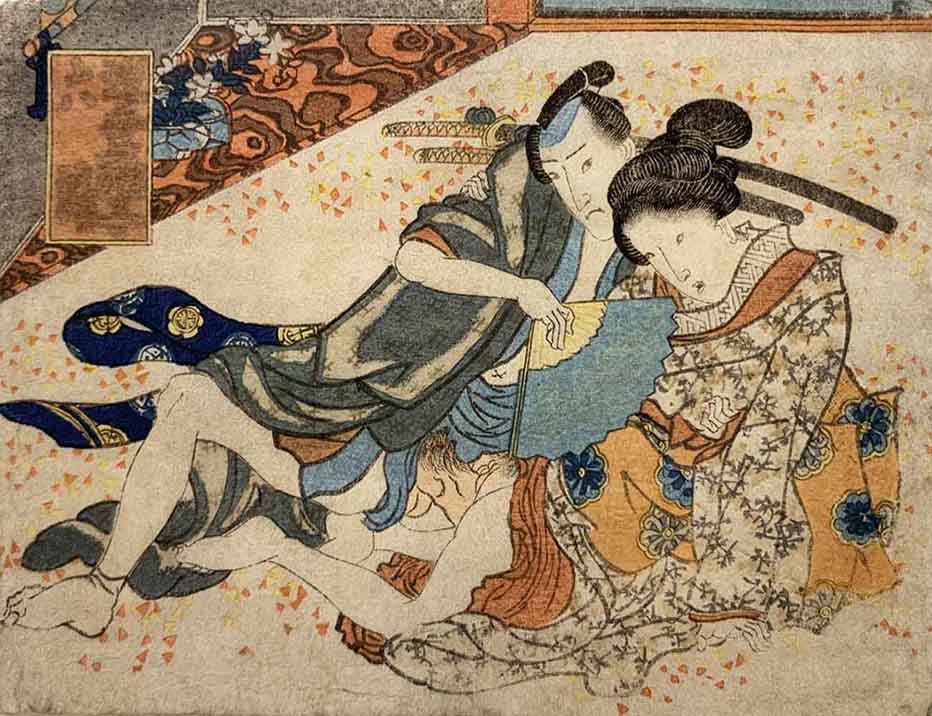Attributed to UTAGAWA KUNISADA (TOYOKUNI III) (1786 – 1864) A samurai keeping his lover cool with a fan c. 1840