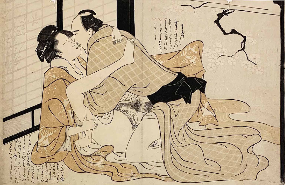 CHIKYOSEI EIRI (active 1795 – 1800) Lovers next to a screen depicting cherry blossom c. 1785