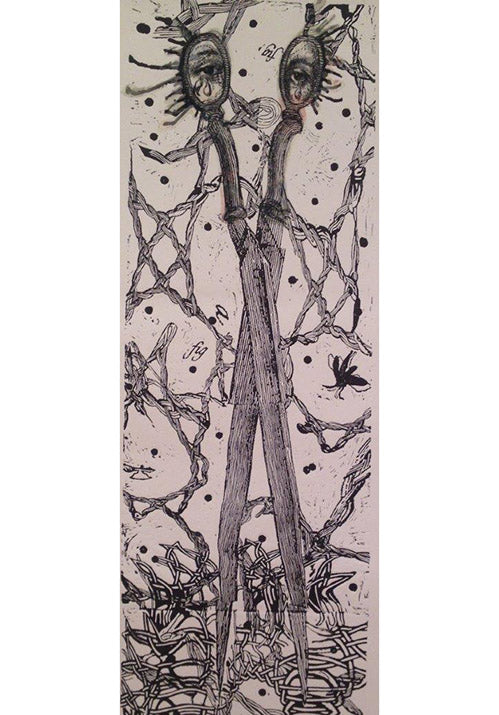 linocut and organza on paper