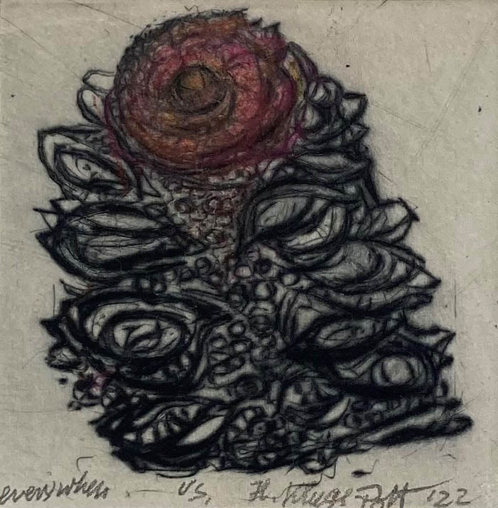 hand coloured drypoint