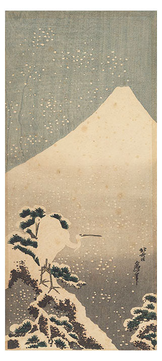 KATSUSHIKA HOKUSAI (1760 – 1849) An egret atop of a snow covered pine tree with Mount Fuji c. 1880