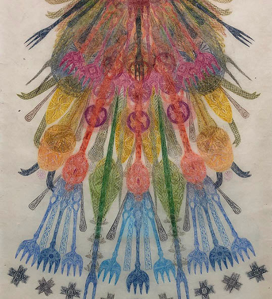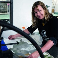 Performance also forms part of her repertoire, as vocalist and lyricist for the printmaking band, the Press Gang.