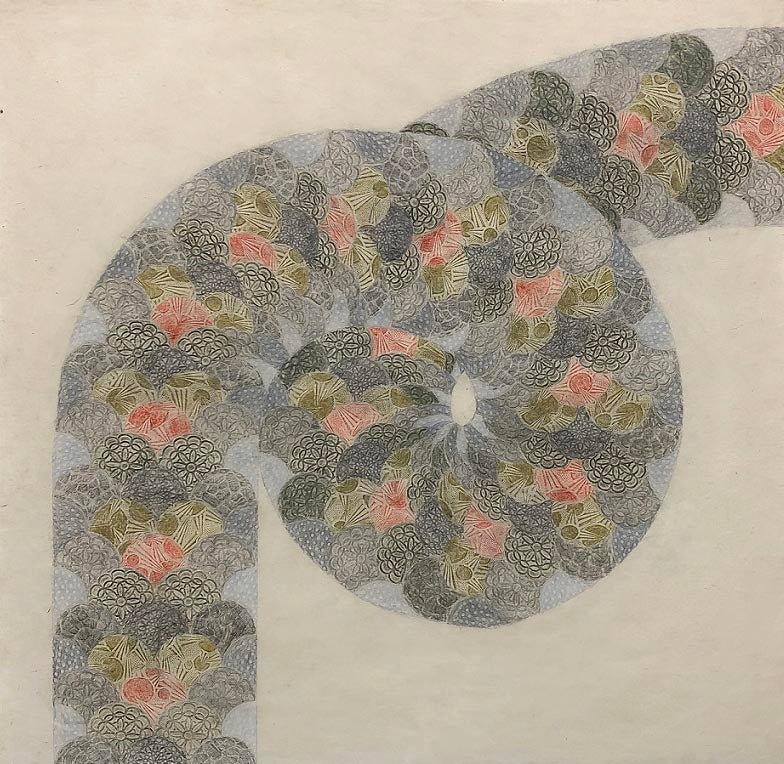 While best known for her technically demanding reduction linocuts, recent developments in Cininas’ practice include a series of artists’ books from recycled materials signalling a conscious decision to engage with a more sustainable art practice through the use of recycled materials.