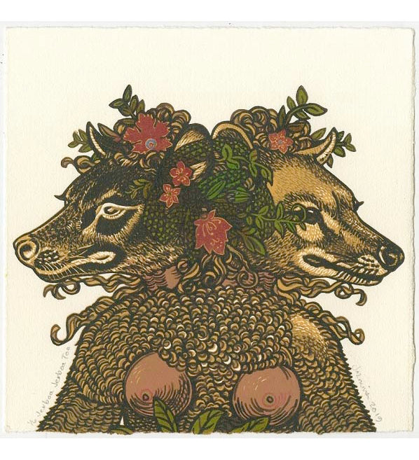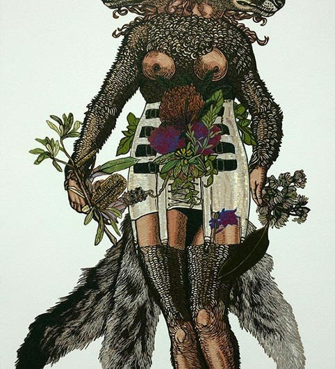 Jazmina Cininas is a Melbourne-based artist who lectures in printmaking and artists’ books at RMIT School of Art. For over two decades, Cininas has been charting the various incarnations of the female werewolf as a vehicle for her printmaking practice, completing her PhD research project, ‘The Girlie Werewolf Hall of Fame: historical and contemporary figurations of the female lycanthrope’ in 2014.