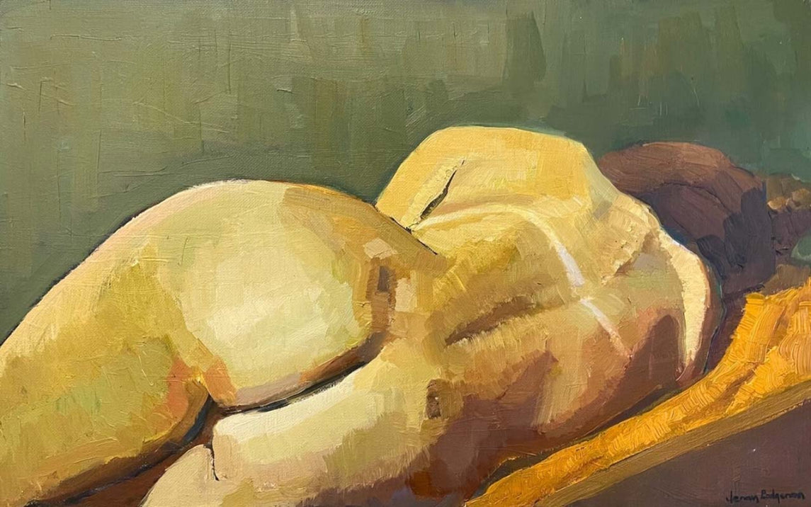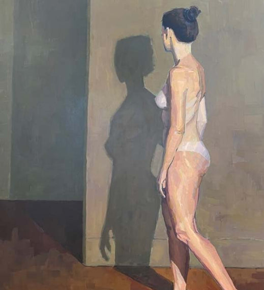 Jenny Rodgerson’s figurative paintings are powerful. They embody both a stillness and a potent sense of inhabited presence. In her distinctive nudes and self-portraits, the contrast between nuanced light and shade combines with a bold sense of colour to arrive at an arresting resolve that captures the essence, or what Wittgenstein would call, the “whatness” of the subject.