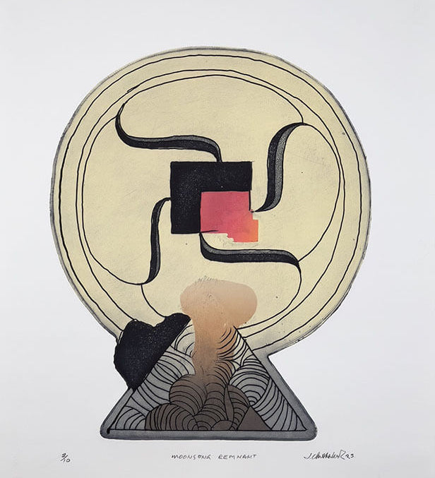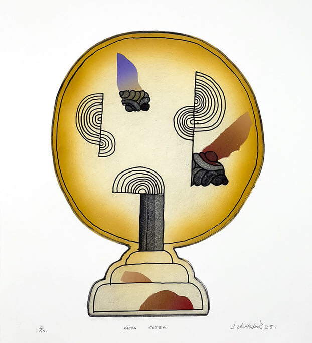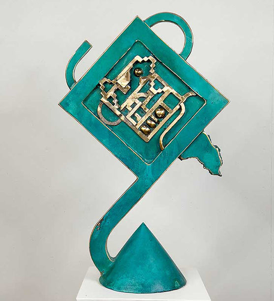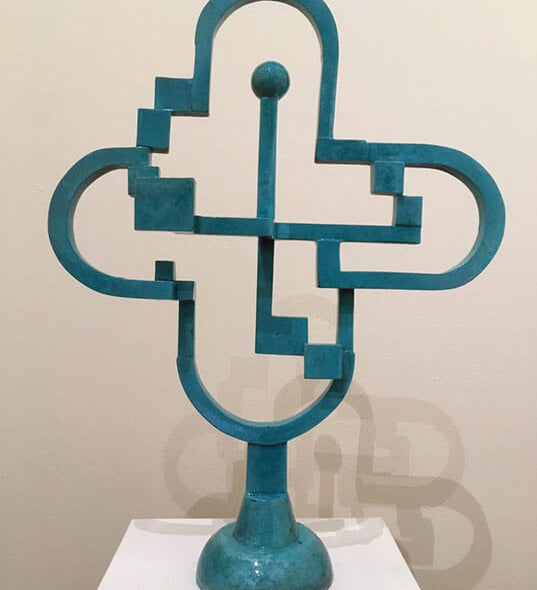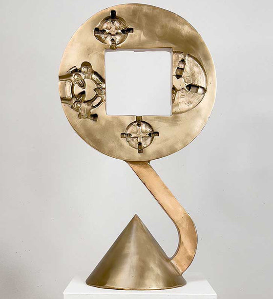Jock Clutterbuck is a sculptor and printmaker of national significance, known for his sophisticated abstract forms executed with precision and detail, while still maintaining an impression of underlying esoteric mysticism. From the abstract movement in his beautifully patinated bronze sculpture to the precise script like details in his limited edition prints there is no question that Clutterbuck is a master of his materials, which is evident looking through his oeuvre. Clutterbuck studied sculpture and drawing at the Royal Melbourne Institute of Technology from 1965 – 66, where he subsequently taught from 1969 – 73 before taking up a role as the lecturer in Sculpture at the Victorian College of the Arts from 1974 – 2000. He is represented in many national and international public art collections including the Museum of Modern Art, New York; the National Gallery of Australia, the Art Gallery of New South Wales, the National Gallery of Victoria, the Queensland Art Gallery, the BHP Collection, Melbourne University, Monash University and Deakin University. He was awarded the NGV society drawing prize in 1966, the Australian Print Council Prize in 1969 and in 1973, the Geelong Print Prize in 1972, the State Government Bicentenary award for sculpture in 1970, the PCA print prize in 1973, the Fremantle Arts Centre Print Prize in 1976 and the Caulfield Arts Centre Sculpture Award in 1979.