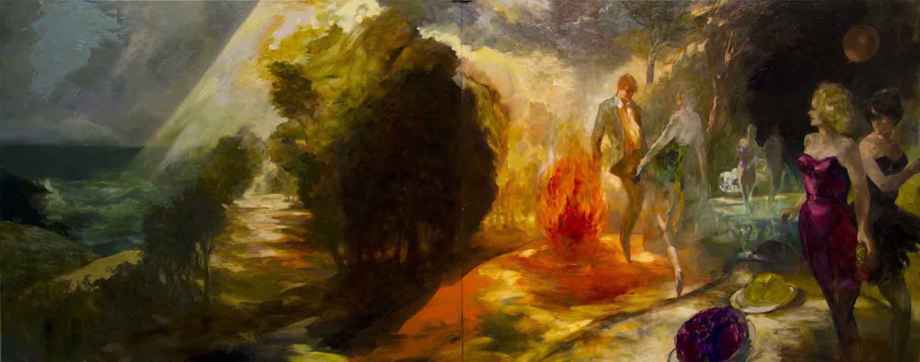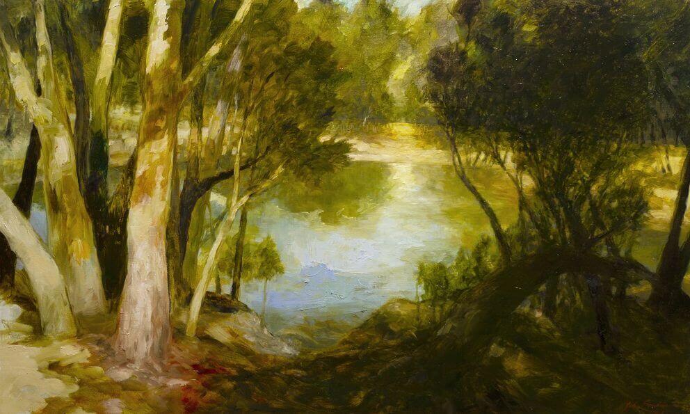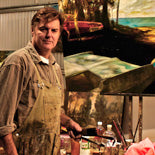 John Anderson is without question a Romantic painter. Romanticism was characterised by its emphasis on emotion and individualism as well as the glorification of nature. By this definition Anderson’s paintings certainly fit. Expressionist elements in Anderson’s work are a consequence of the fluid nature of his oil painting technique, painting on Belgian linen wet into wet, where brushwork animates the melding of colour and form, leaving its mark in this process. Much of the setting of Anderson’s paintings is the Mornington Peninsula and most specifically Cape Schanck where he now lives and formally worked as a professional cray fisherman for some years in order to support his art practice.