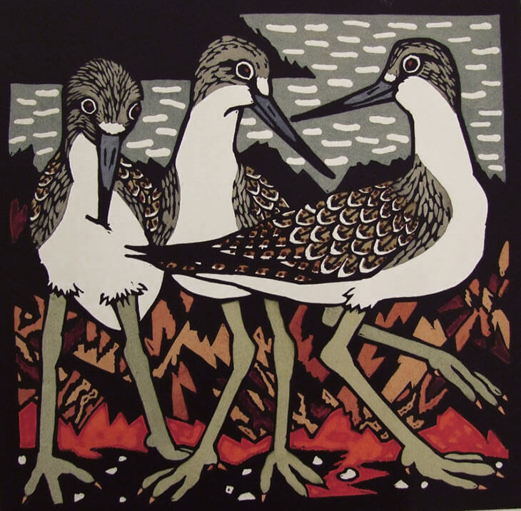 hand coloured linocut