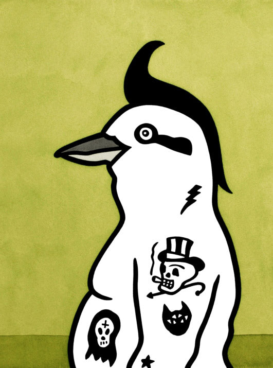 hand coloured linocut