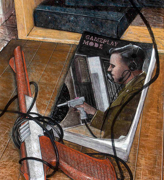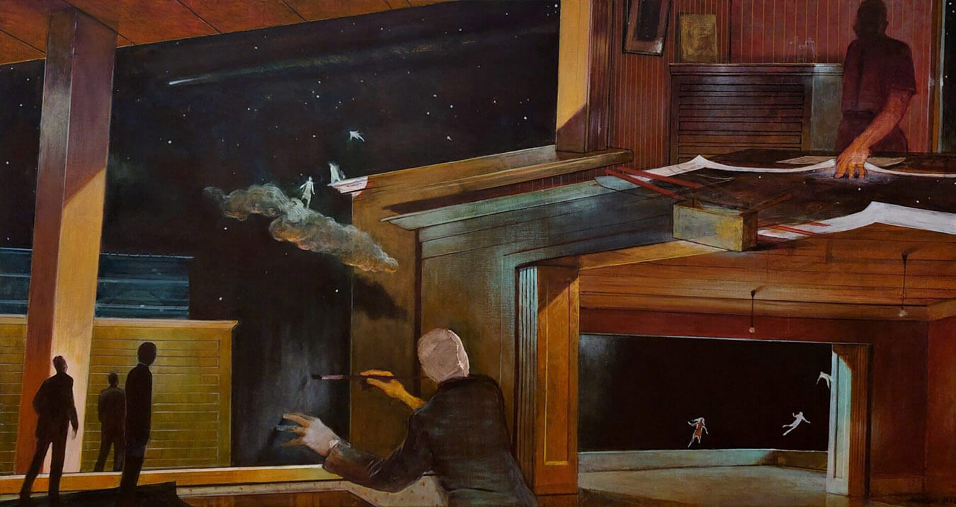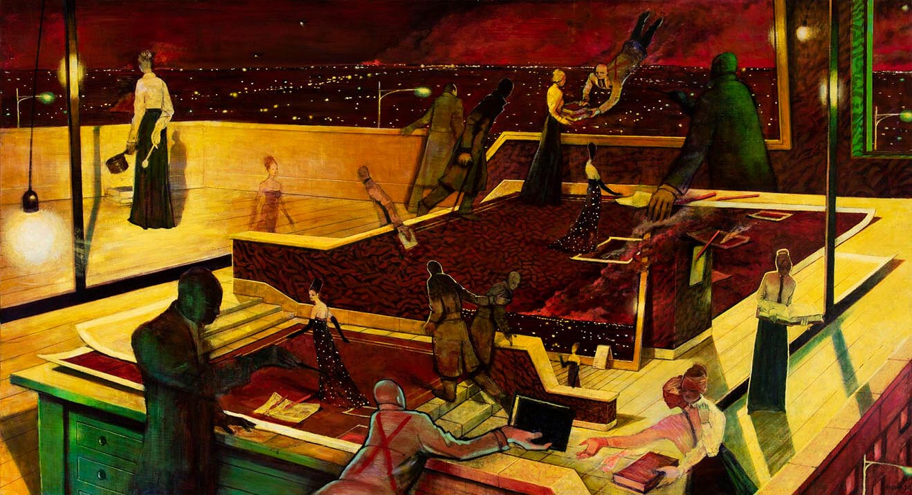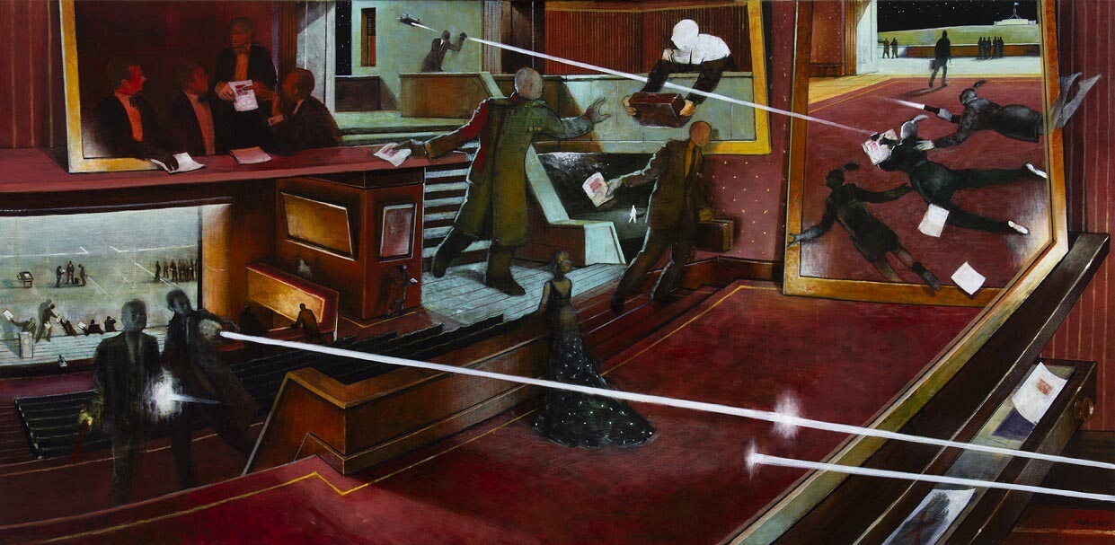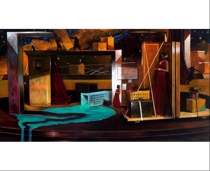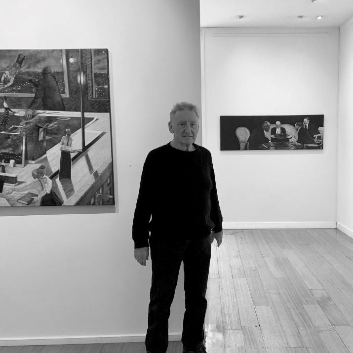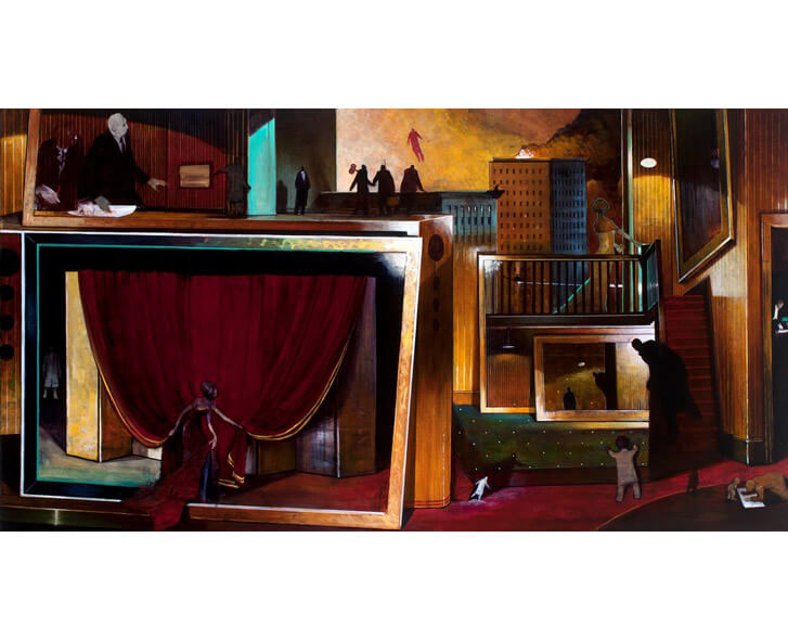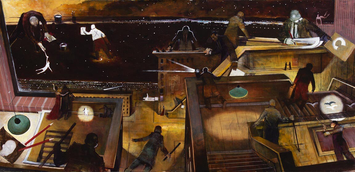 Figurative narrative painter and draughtsman Peter Neilson was born in Melbourne and completed a Diploma of Fine Art at RMIT, Melbourne. His expansive painted works explore variations in perspective and utilise the cinematic language of film noir to suggest dark urban narratives. His recent series of works on paper are detailed studies of musical instruments and household items, utilising his recognisable varying perspectives. Neilson’s work has been exhibited nationally in Sydney and Melbourne and internationally in London and Salzberg.
