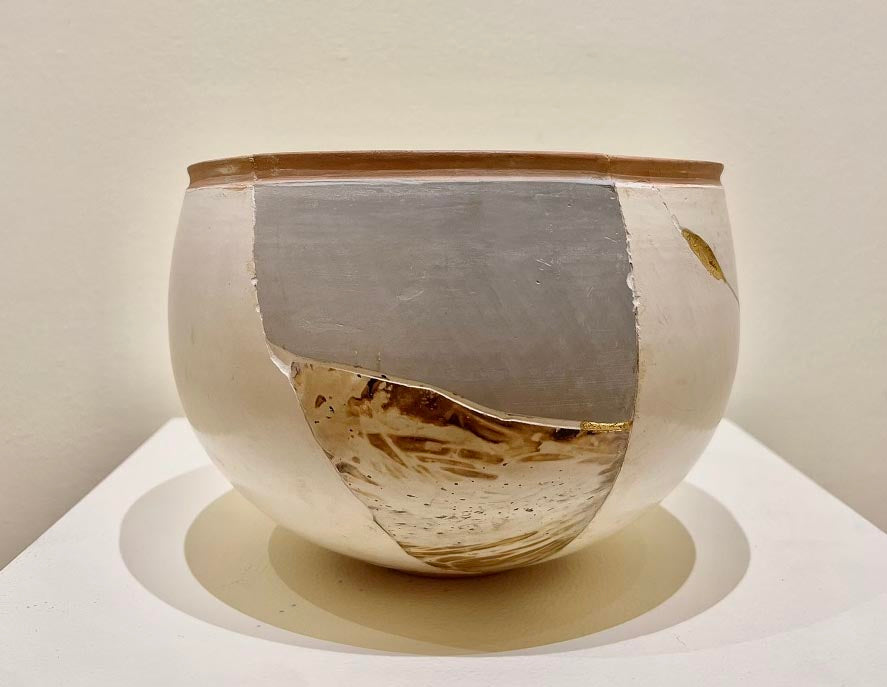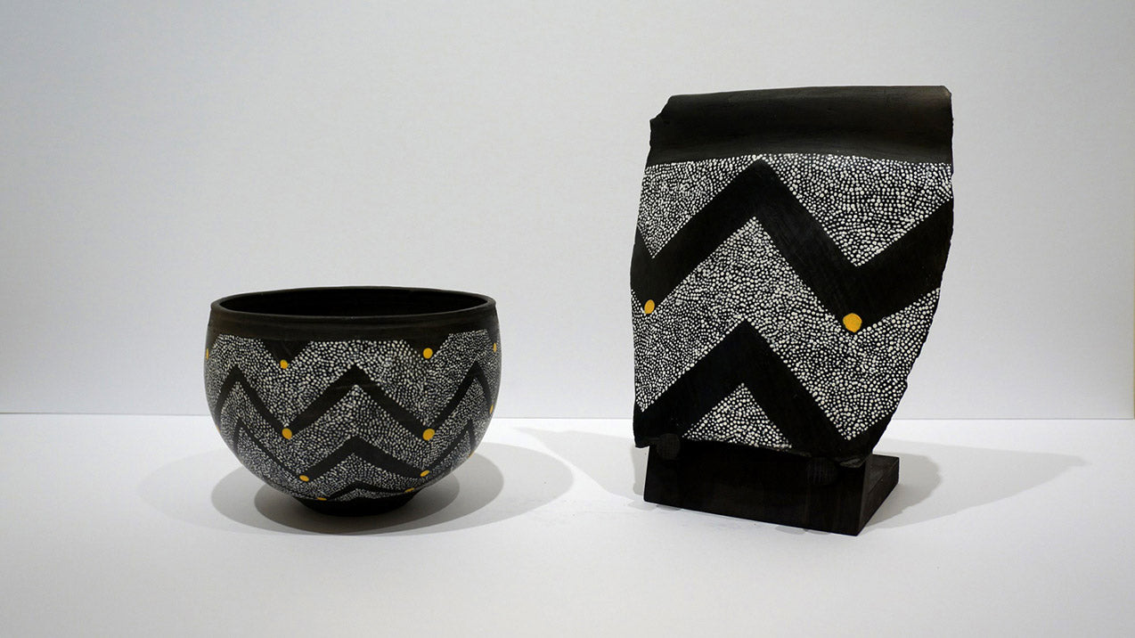 The black fired, burnished series of bowls or Black Holes in Space and the dark smoked works comprising the Inner Landscape series represent the ‘dark’ aspect of Spronk’s work, which are beautifully juxtaposed by his recent series of broken and restored works in The Magic of the Forest and The Forest Fragments series, which represent the ‘light’.