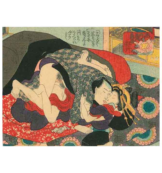 Attributed to UTAGAWA KUNISADA (1786 – 1864) A courtesan and her lover under a futon c. 1840