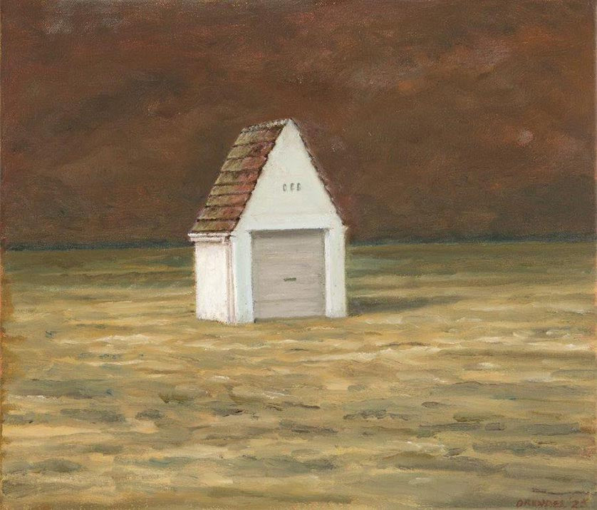 Recent Work brings together a new series of paintings by Graeme Drendel that extend his distinctive exploration of solitude, ambiguity, and the quiet complexity of human presence. Long-time followers will recognise the visual continuity, stark horizon lines, muted colour palettes, and isolated figures or objects. Drawing on his early experiences in Victoria’s Mallee region, Drendel offers an honest, expansive backdrop that is flat, quiet, and unrelenting.