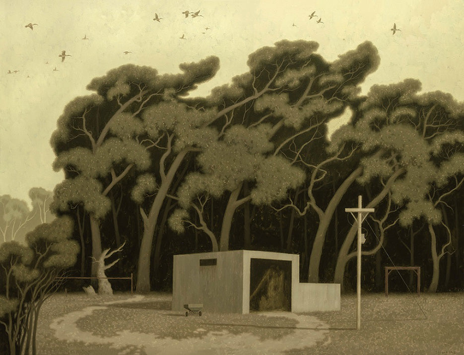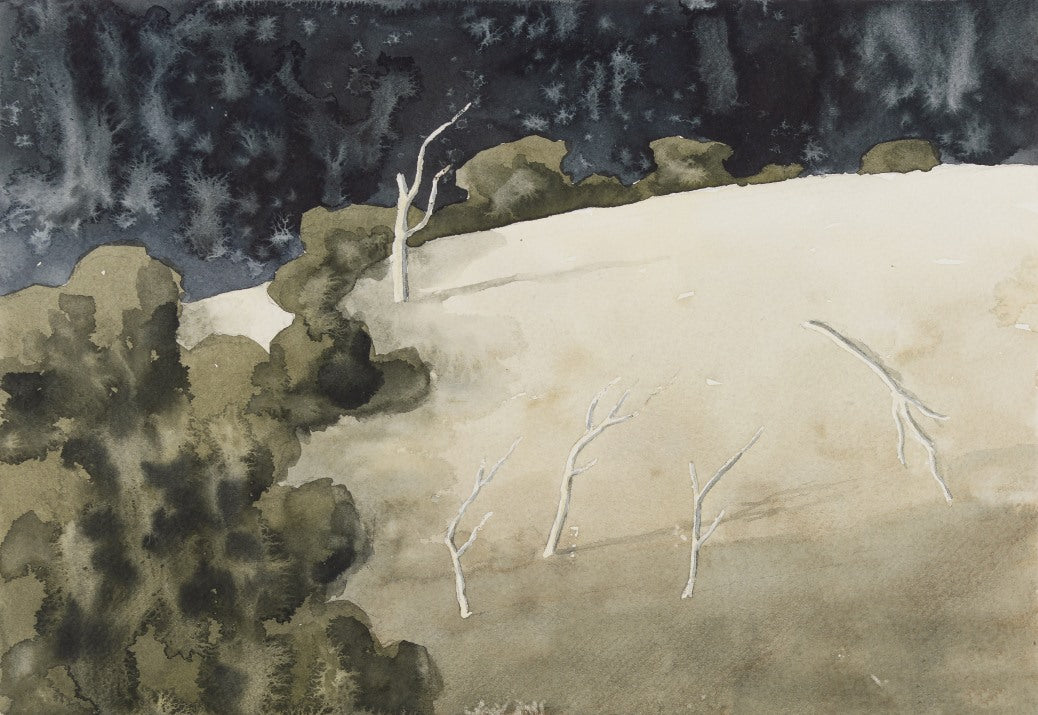 These recent paintings reference a variety of ideas including – narrative, transience, beauty, serenity, dualities (dark/light), fear, the esoteric and dreams – amongst other things. Some paintings grew entirely from simple starting points like three words in a poem, a paragraph in a book, another piece of art or just a curious thought. Other works were sparked by something visual I noticed in the landscape around me, through the visual sense rather than thought or concept.