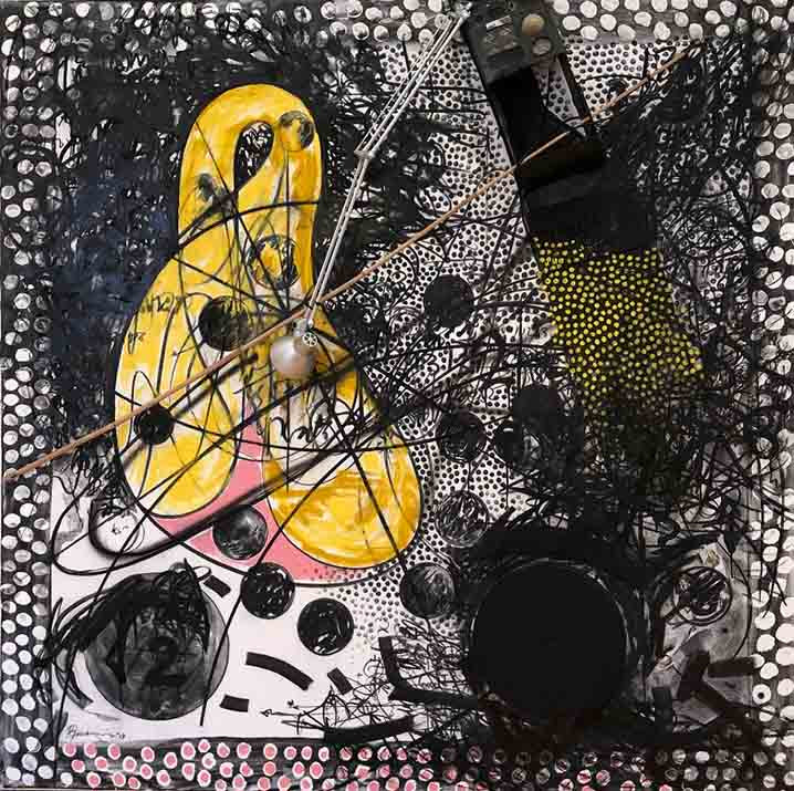 charcoal, acrylic paint and mixed media on canvas