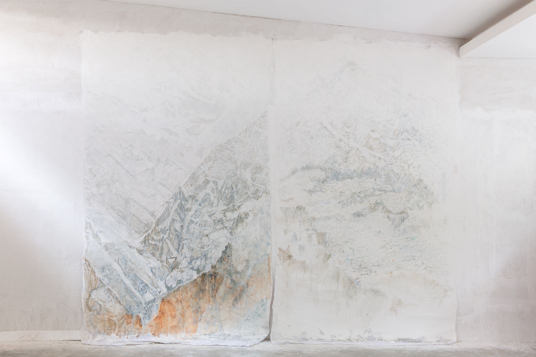 oil and incision on fresco plaster