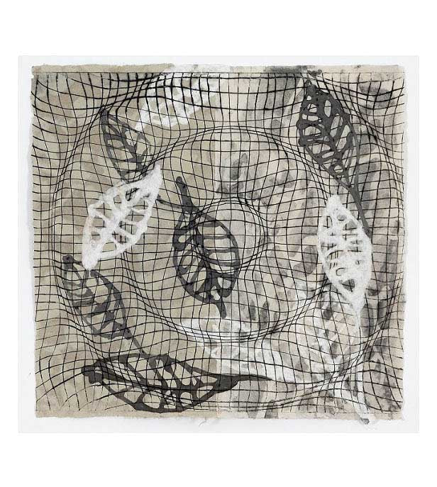 drypoint, pulp painting and bush charcoal on handmade papers with stitching