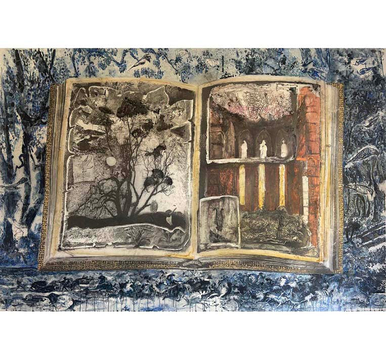 watercolour, pigment, graphite, copper metal leaf, on drafting film and paper