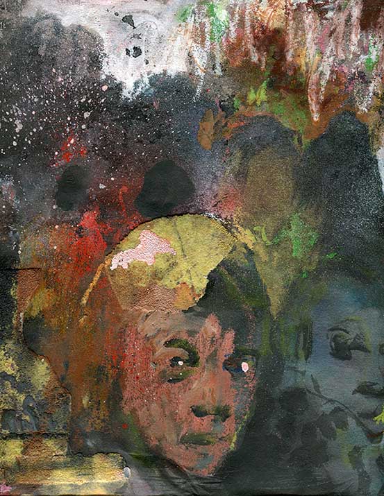 watercolour, gouache, crayon, collage and ink on paper