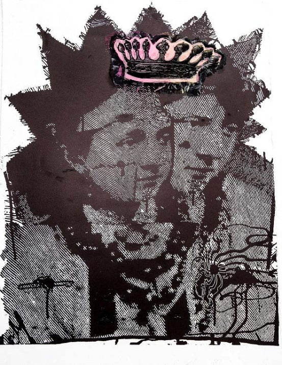 linocut and organza on paper