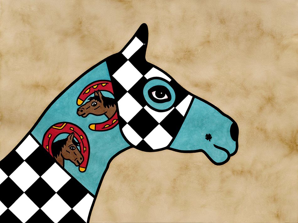 hand coloured linocut