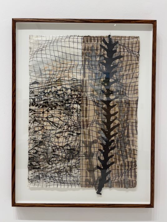 drypoint, pulp painting and earth pigments on handmade papers with stitching